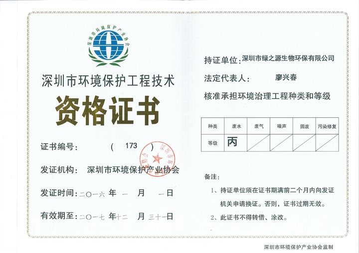 深圳市綠之源生物環(huán)保有限公司成立十余年,是經(jīng)深圳市環(huán)保局批準(zhǔn)的具有專項(xiàng)環(huán)保工程設(shè)計(jì)資質(zhì)的企業(yè),深圳市高新技術(shù)企業(yè)。公司從創(chuàng)立初期的水處理藥劑、水處理設(shè)備的研發(fā),逐步成長為環(huán)保類綜合性服務(wù)的企業(yè),目前年?duì)I業(yè)額約三千萬,集水處理藥劑研發(fā),工業(yè)廢水、廢氣及農(nóng)村生活污水處理等環(huán)保工程的設(shè)計(jì)、安裝、調(diào)試、運(yùn)營、技術(shù)咨詢一條龍服務(wù),為珠三角眾多企業(yè)服務(wù),解決相關(guān)環(huán)保難題,并取得了良好的社會效益和環(huán)境效益。